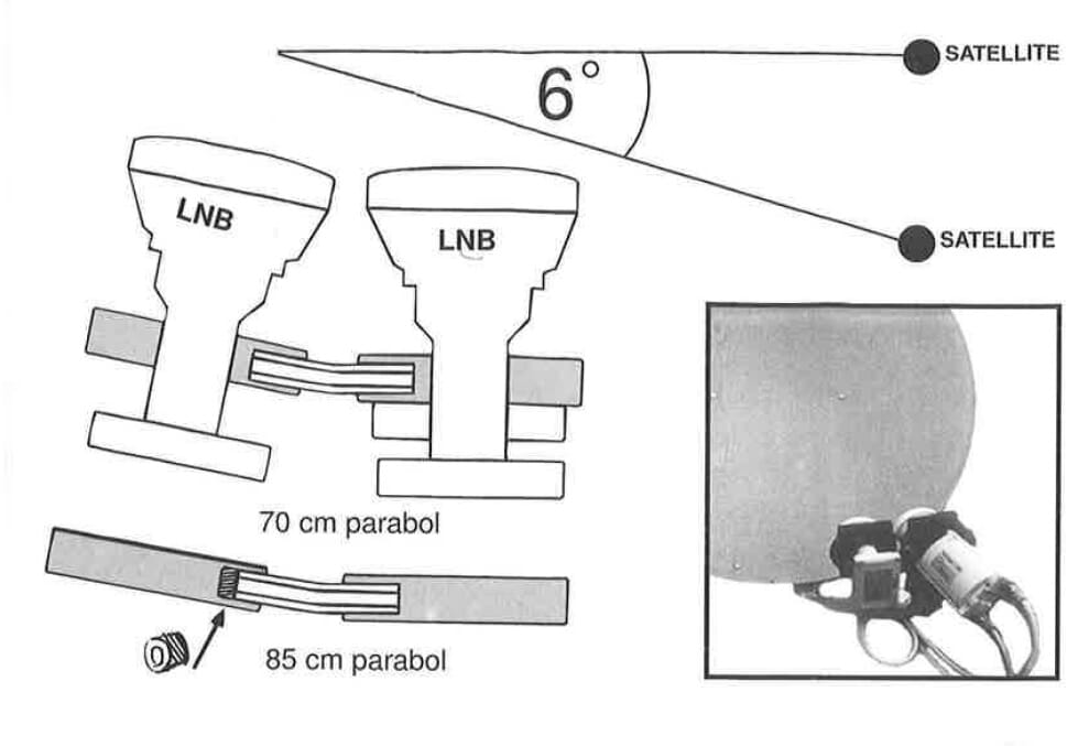 Monteres på eksisterende LNB og gir plass til et ekstra LNB på 6 grader forskjell (f.eks. 1W og 5E, eller 13E og 19.2E)