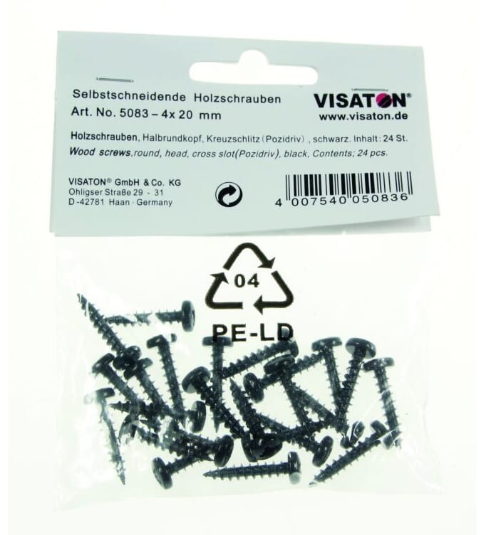 Høyttalerskruer, Visaton, sorte, 4x20mm, pakke med 24stk