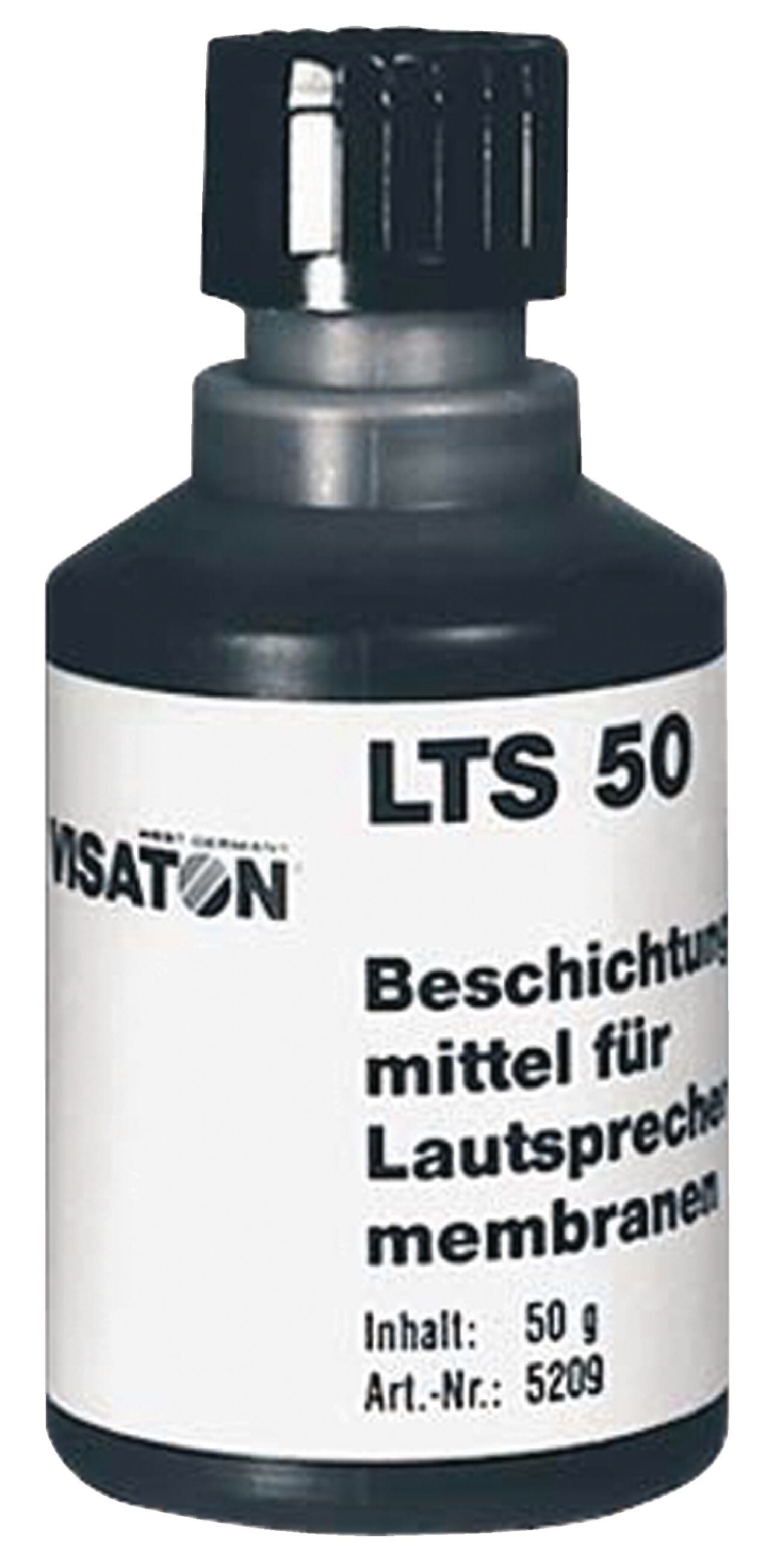 Coating liquid for loudspeaker cones (black). For better internal damping, reduction of partial oscillation and linearization of the frequency response. Prevents bleaching of the cone. Especially suited for cone speakers with paper cones. Water-soluble until hardened completely.