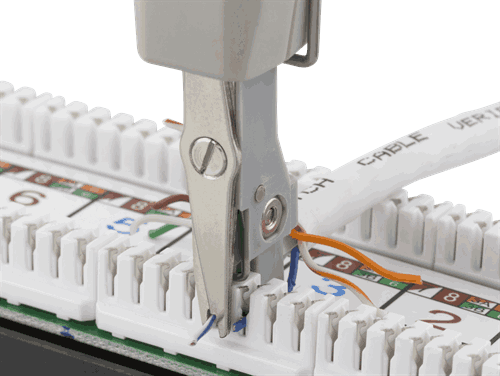 A tool for terminating network cable in wall outlets, patch panels and keystone jacks where LSA is used.