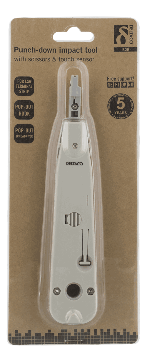 DELTACO Network cable punchdown tool, Krone LSA, touch sensor, hook and screwdriver, white