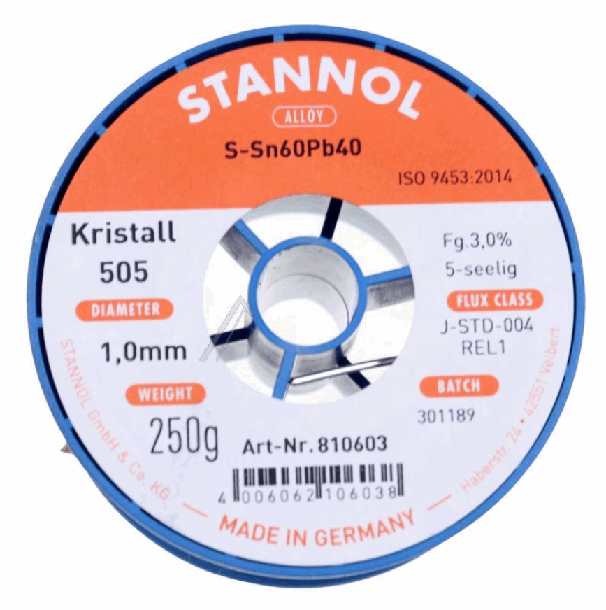 SN60PB40 STANNOL LODDETIN, 1,0MM 250G