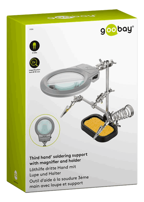 Goobay Third hand soldering support with magnifier and holder, silver/black