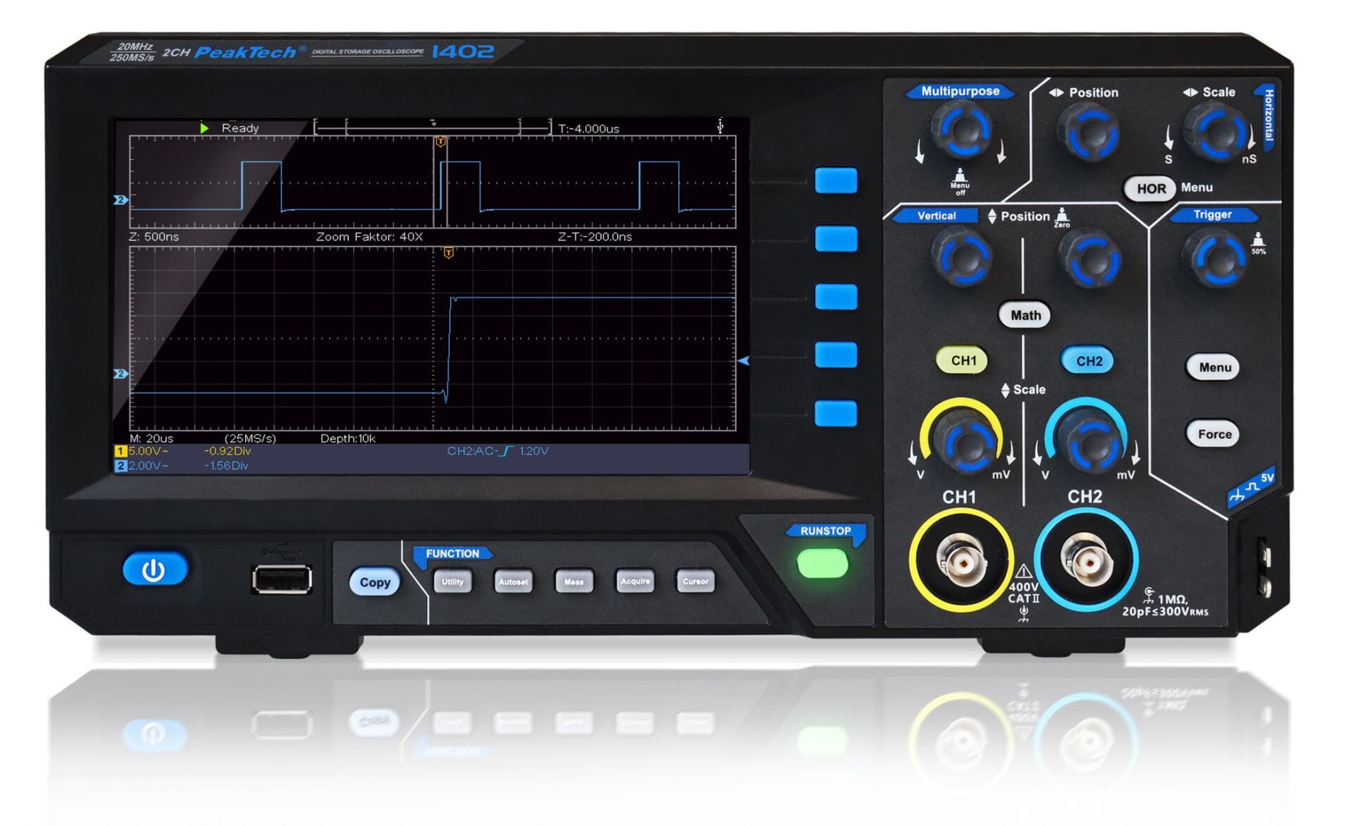 PeakTech P 1402 20 MHz / 2CH, 250MS/s Digital oscilloscope