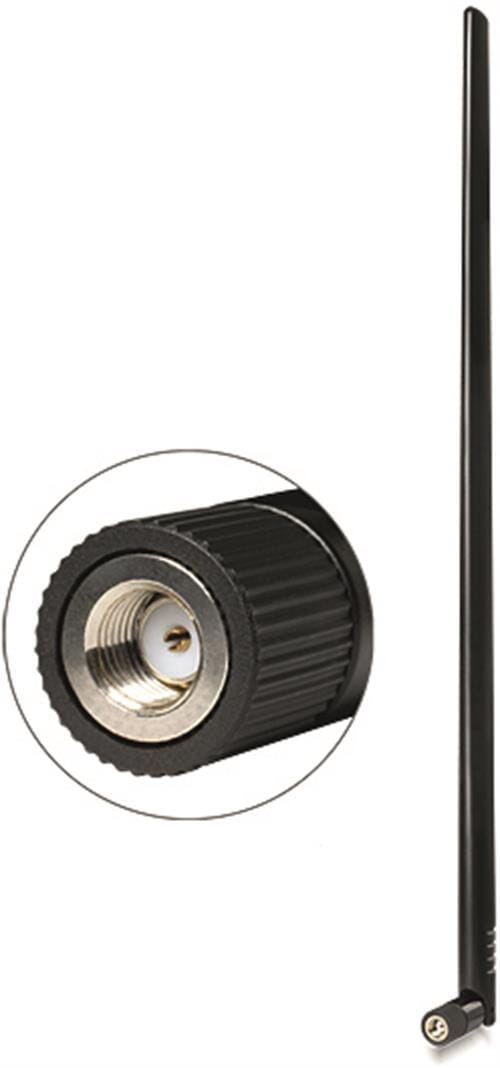DeLOCK WLAN Antenn, RP-SMA ha, 9dBi, 2,4GHz, rundstrålande, 50 Ohm, svart