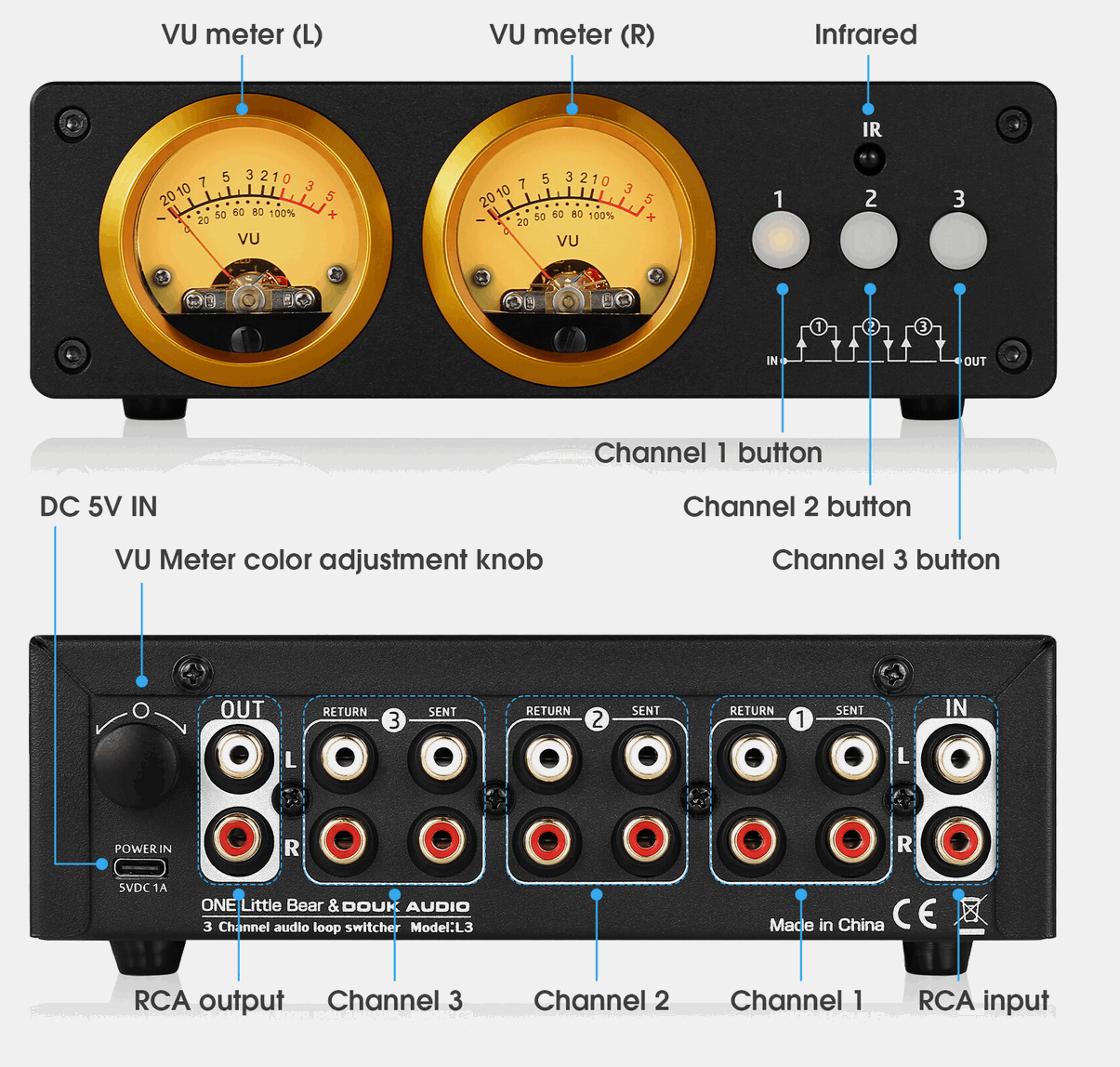 Multifunctional L3 audio switcher is originally designed by Douk Audio Studio, it is not only an audio switcher that can work in 1-IN-3-OUT and 3-IN-1-OUT mode to make contrast among different audio source, amplifier or active speakers etc.; but also a loop switcher that can add up to 3 audio effectors to create multi-layered musical effects and enhance the richness and dynamism of music to bring more creative space and fun.