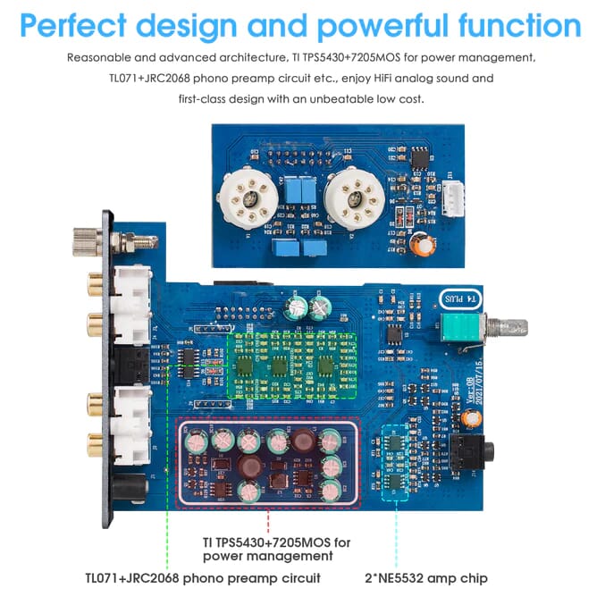 Godt rørbasert RIAA trinn med hodetelefonforsterker fra velkjente Douk Audio.