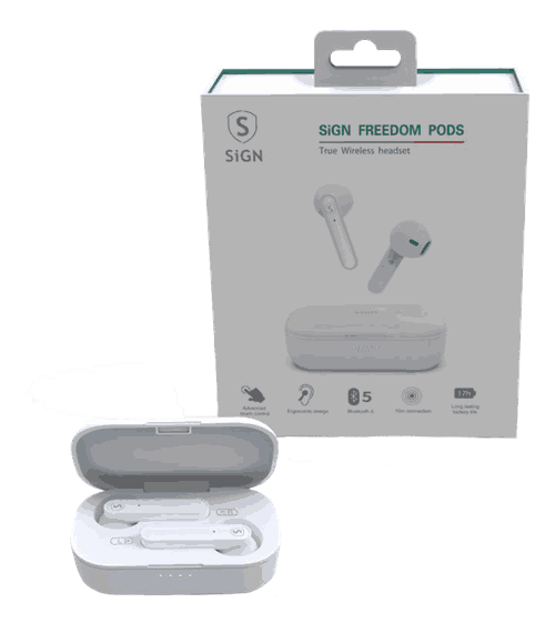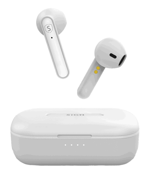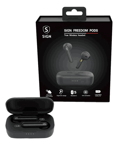 SiGN cordless headphones with ergonomic fit and super sound quality! The headphones have smart touch controls that give you complete control over your music and conversations. With a two-sided microphone, the headphones are perfect for conversations, music and exercise!