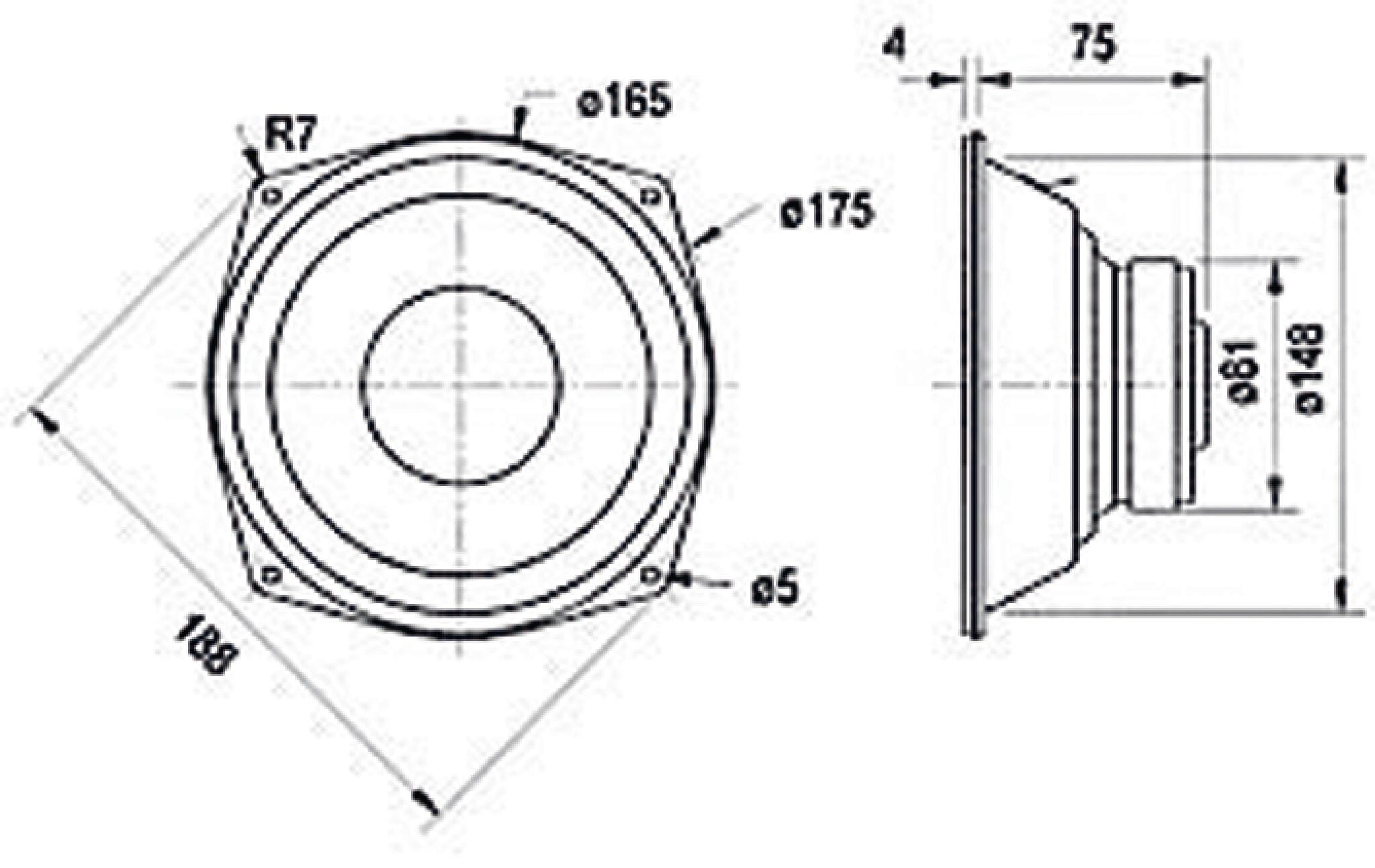 17 cm basshøyttaler. På grunn av korgens konstruksjon svært godt egnet erstatningselement i mange standard HiFi-høyttalere.