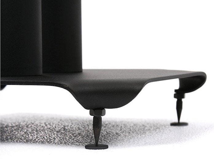Vi anbefaler at man bruker spikes på bunnplaten slik at stativet med høyttalere koples akustisk vekk fra gulvet, spikes er inkludert i prisen.