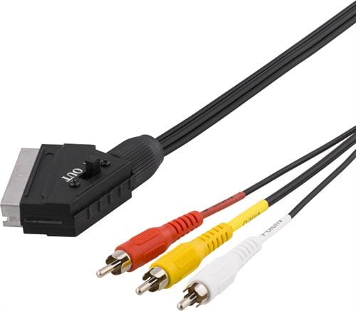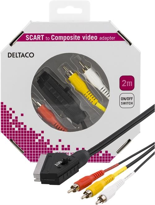 DELTACO SCART til Kompositvideo, 3xRCA, ut - ut, 2m, svart