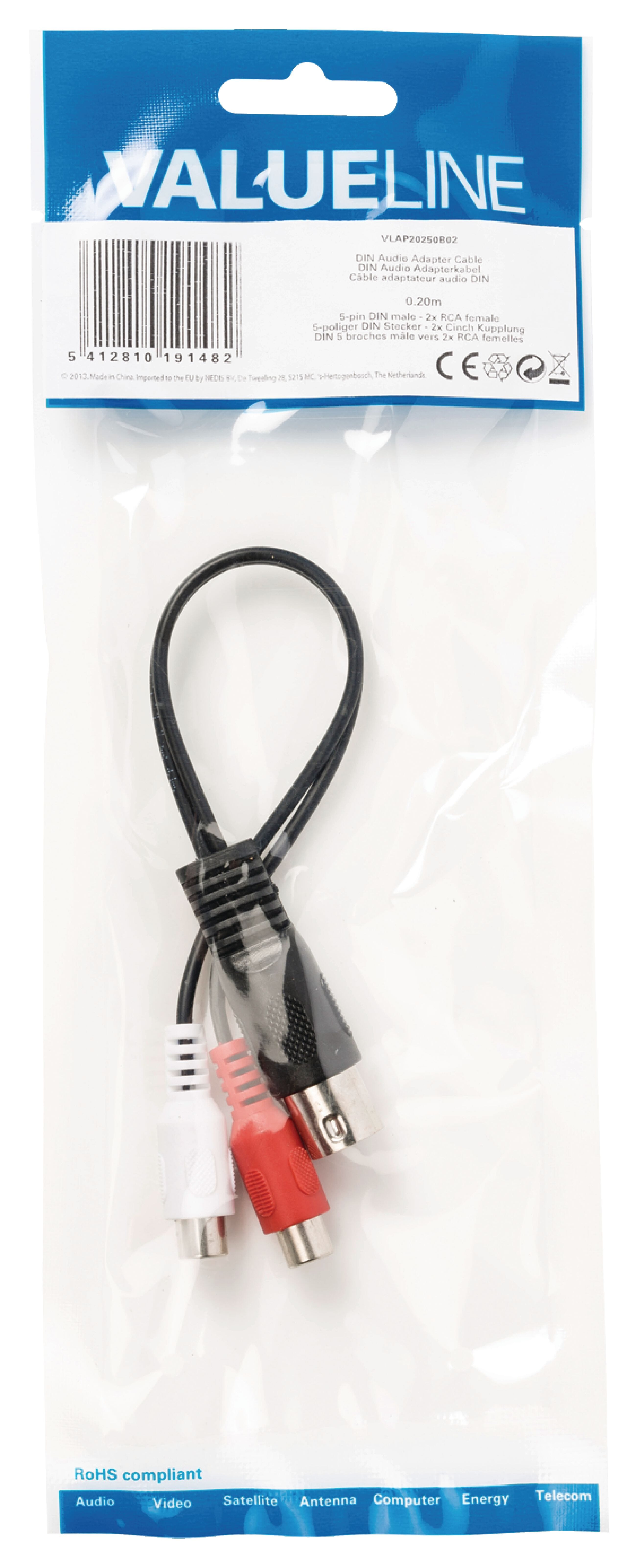 Stereo Lydkabel 5p DIN Han - 2x RCA Hun 0.20 m Svart