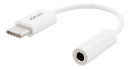 DELTACO USB-C to 3.5 mm adapter, stereo, passive, 9 cm, white