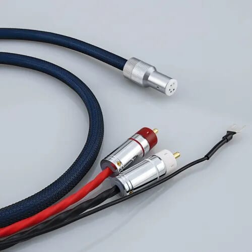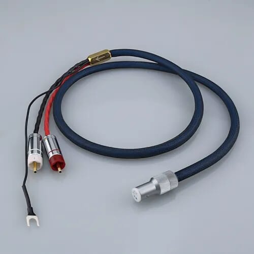 Topp kvalitets kabel med 5-pin plugg for tonearm, 2 RCA + jord med plugger av høy kvalitet.