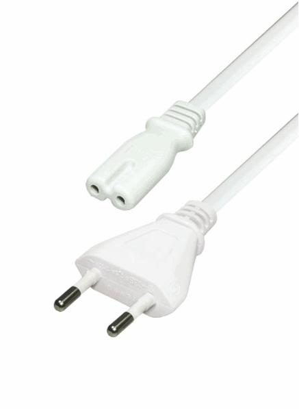 STRØMLEDNING, VDE M/8-TALLS STØPSEL, 2m hvit