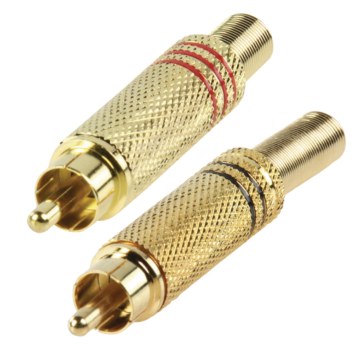 Farge: Gull/Rød + Gull/SortKontakttype: RCA MaleDiameter: 7.0 mmKvantitet/antall: 2 st.Plettering: Gull