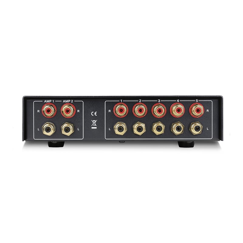 Med AUX-S PRO har du muligheten til å bytte mellom en av opptil fem HiFi-kilder (f.eks. CD-spiller, DVD-spiller, tuner etc.) og en av opptil to HiFi-forsterkere uten å måtte bytte kabling. Bryterne av høy kvalitet og de gullbelagte forbindelsene garanterer svært lav kontaktmotstand.