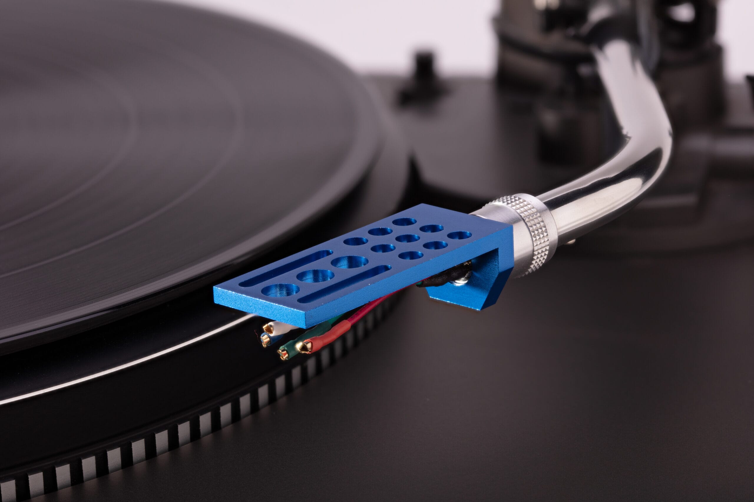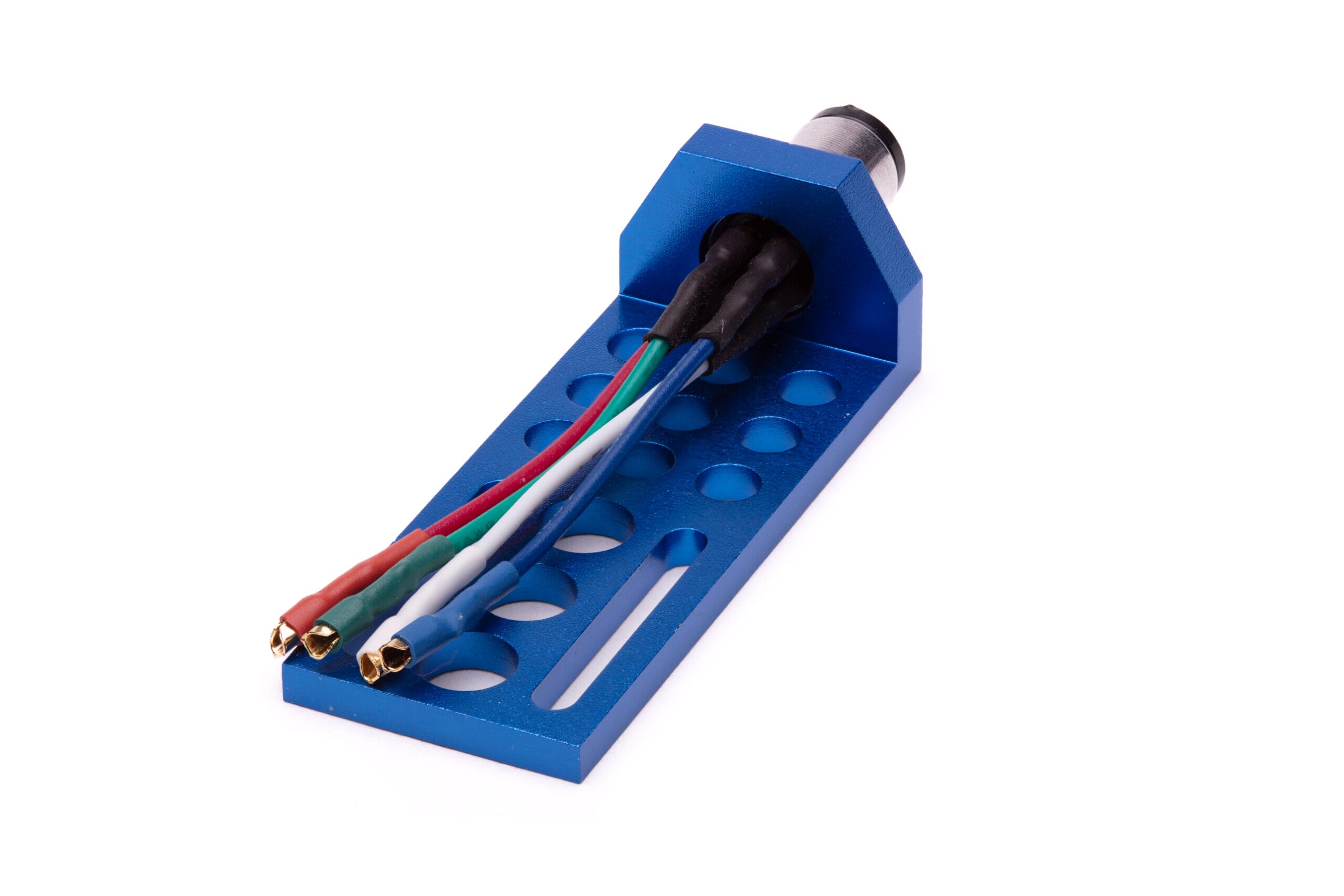 Headshell in SME design, blue anodized, CNC aluminum, with gold-plated OFC connecting cables + screw set, weight: 13 g