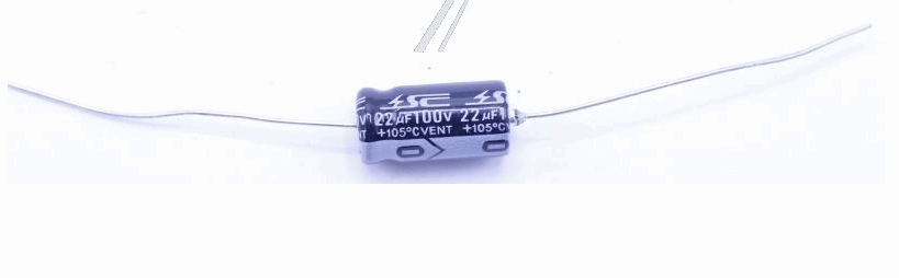 22uF, 100V Elko aksial 85° 6,5x18mm