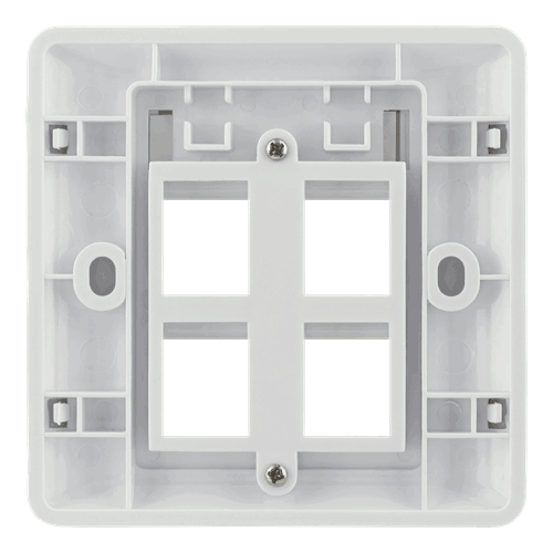 The outlet is divided into two parts, so that the screw is hidden when finished mounting. The four ports are distributed on a 44x40mm surface.