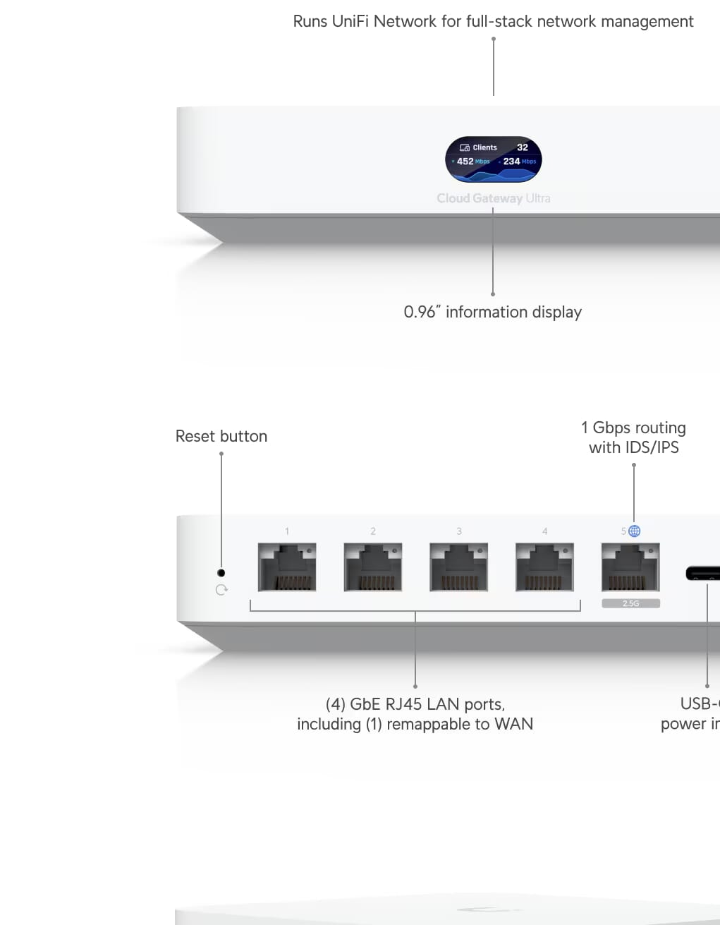 Powerful and compact multi-WAN UniFi Cloud Gateway with a full suite of advanced routing and security features.
