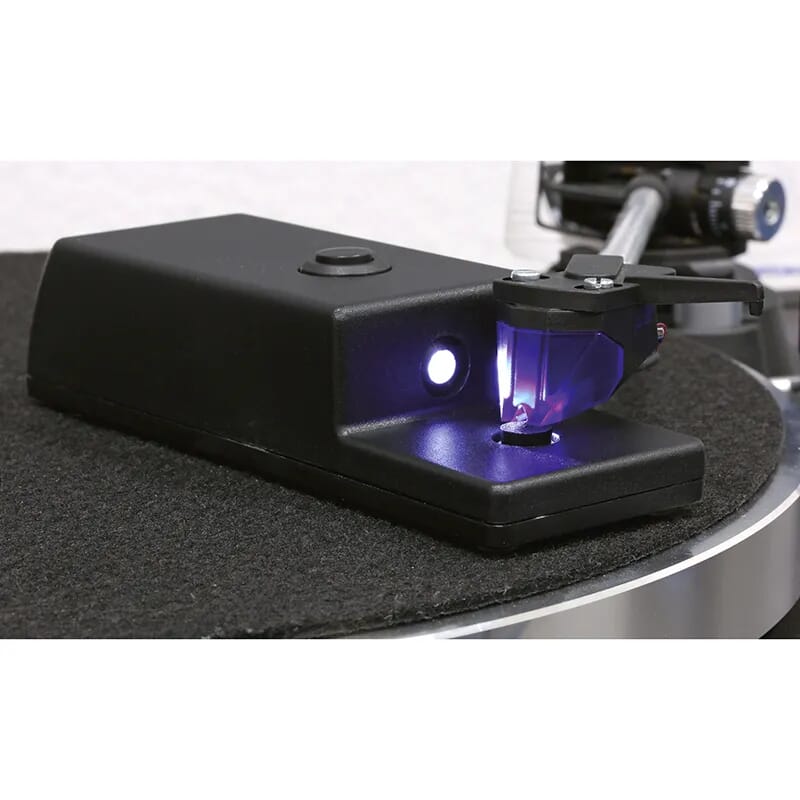 Alt du trenger å gjøre er å plassere pickupen på kullbørsten, som vibrerer ved høye frekvenser med minimal avbøyning, i 10-15 sekunder. Sammen med rensevæsken som er inkludert i pakken så rengjøres stiften.
