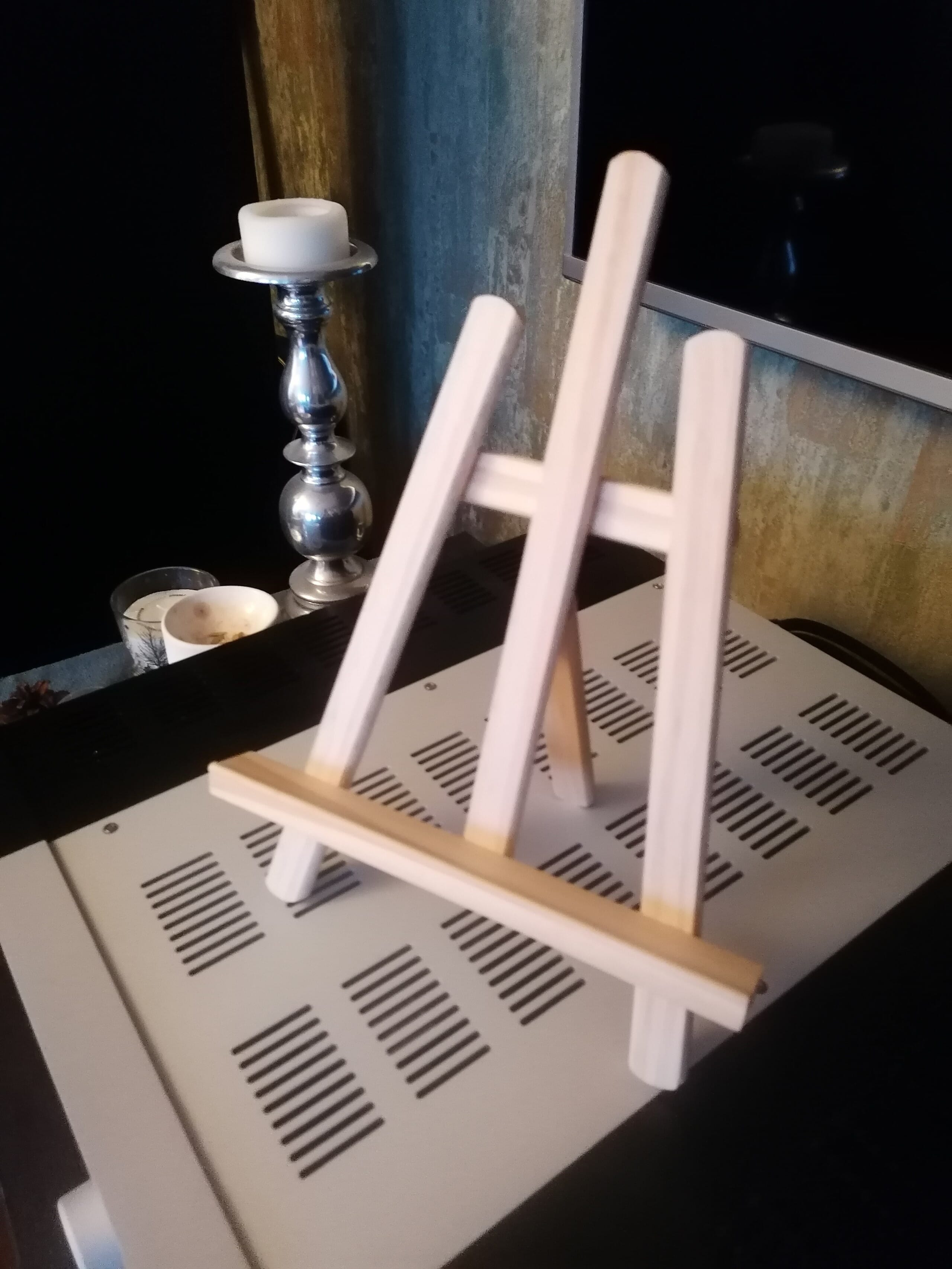 Kjekk holder i tre for plater (eller andre ting som f.eks. et nettbrett)