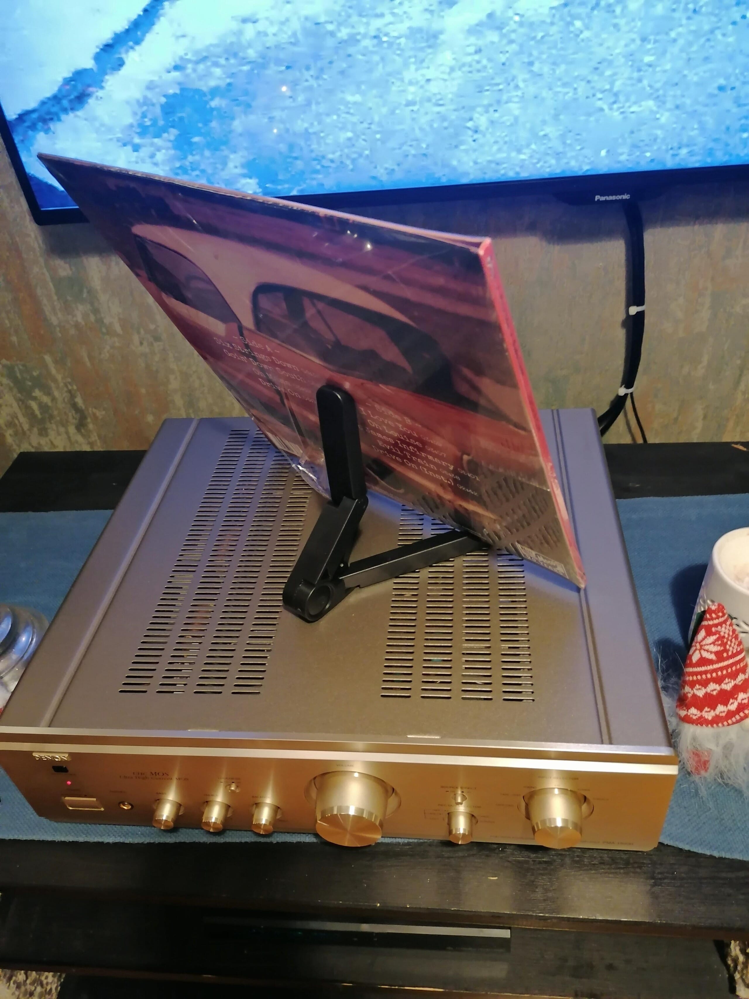 Sammenleggbar holder for flott fremvisning av f.eks. et platecover.