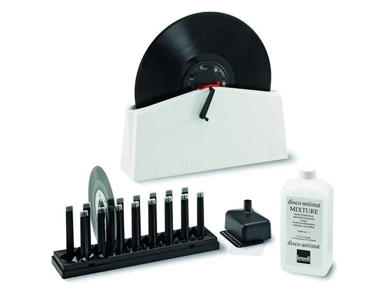 Flott og velfungerende vaskemaskin for vinylplater. Vasker begge sider samtidig, og fjerner all skitt og statisk elektrisitet. Leveres med 1l rensevæske, stativ for å sette plater til tørk, samt en oppsamlingsboks for gjenbruk av overflødig rensevæske.