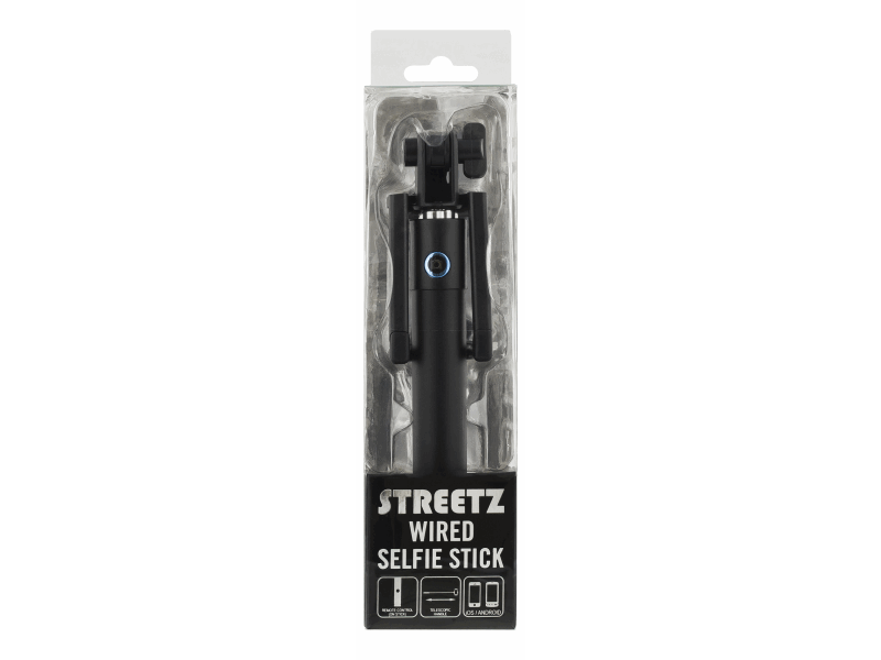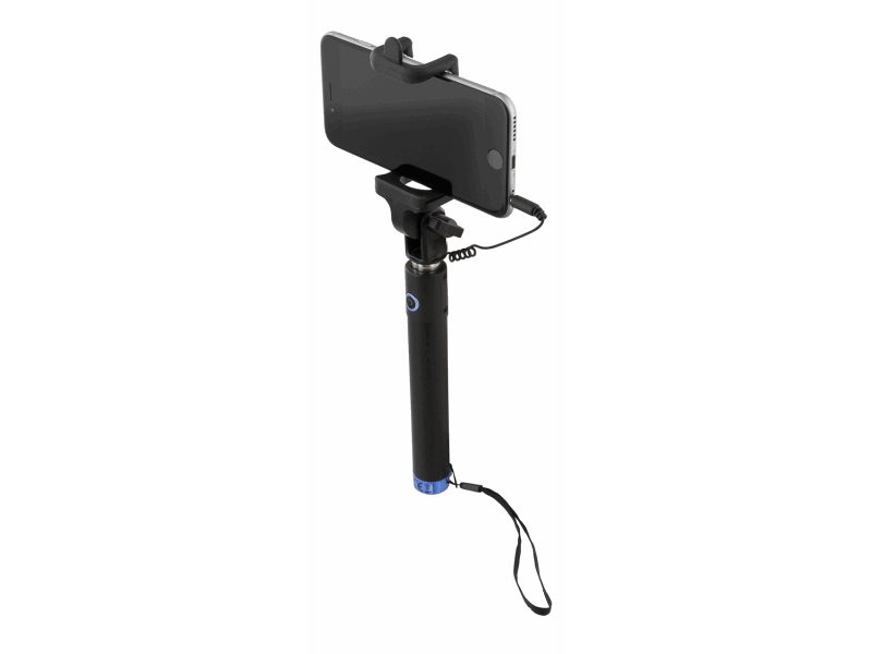 STREETZ wired selfiestick with shutter, iOS/Android, 3.5mm. blue