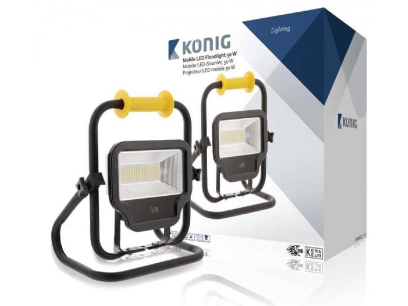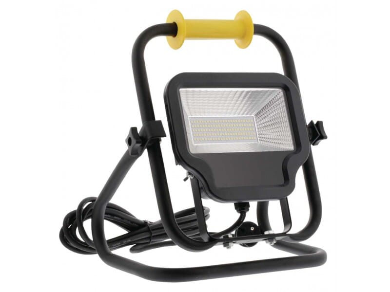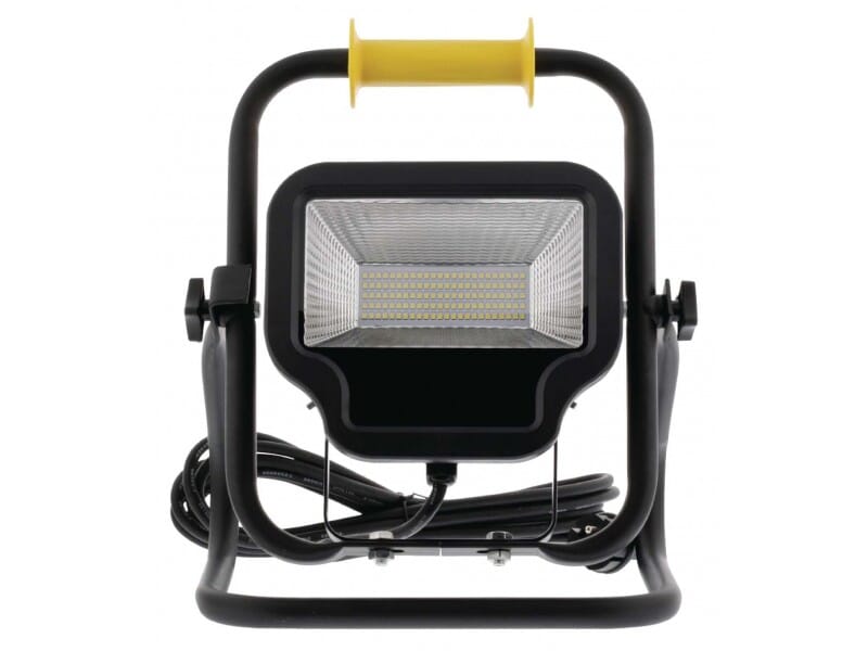 Innendørs og utendørs 50 watt LED-flomlys av klasse II (dobbeltisolert) med en svært effektiv lysytelse på 4000 lumen. Det kraftige LED-lyset med sikkerhetsglass bruker 85 % mindre energi enn vanlige halogen-flomlys på 400 W, og det er støtsikkert og vedlikeholdsfritt. I tillegg har LED-brikken en ekstremt lang levetid og kan vare i mer enn 20 000 timer. Det leveres med 5 meter H07RN-F 2 x 1,0mm²-ledning.