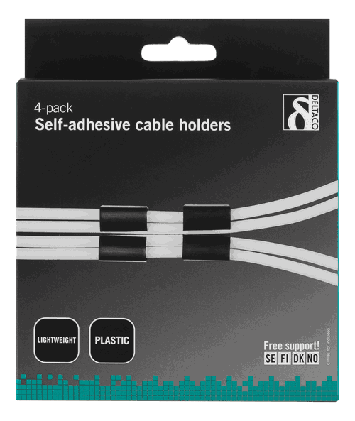 DELTACO adhesive cable clip in plastic, inner dimensions 29x9mm, 4-pack, black