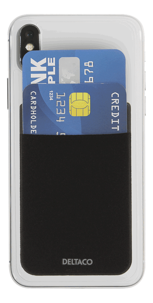 With the DELTACO adhesive credit card holder it is very convenient and easy to take your credit cards, key cards or other suitable items with you always.