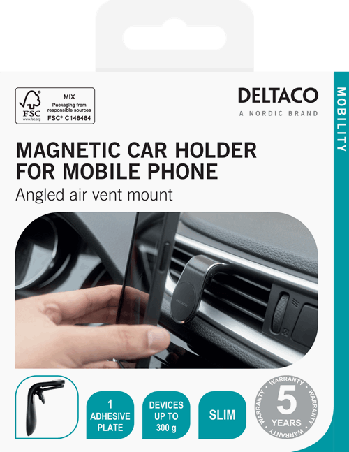 DELTACO magnetic car holder, angled air vent mount, for mobile, black