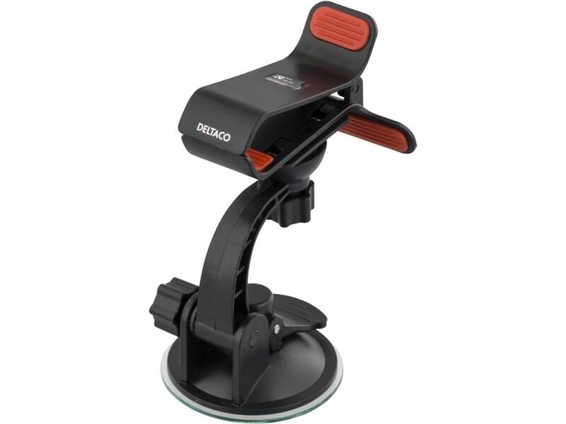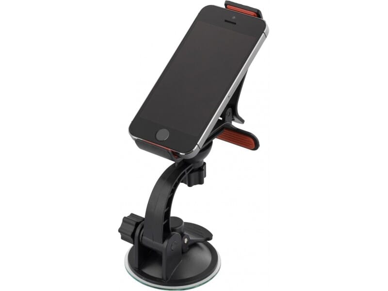 Et stabilt klemfeste med sugekopp som monteres på frontruten eller på dashbordet. Holderen passer de fleste smartphones. Takket være gummerte flater sitter den monterte enheten sikkert på plass i ulike vinkler.