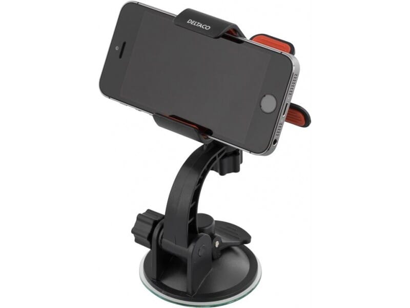 Holder for smartphone i bilen, klemfeste med sugekopp, svart