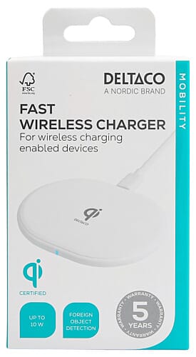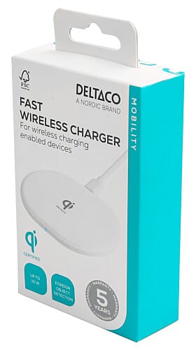 Foreign Object Detection (FOD) sørger for en sikker lading. Kompatibilitet er ikke et problem, Fordi den lader enheter med integrert Qi samt enheter med Qi-tillegg. I tillegg er rask trådløs lading tilgjengelig for enheter som støtter det.