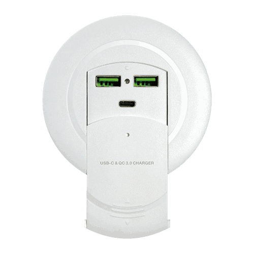 90W Desktop embedded charging station, USB-C and QC3.0, 90W USB-C PD, USB-A QC3.0, white
