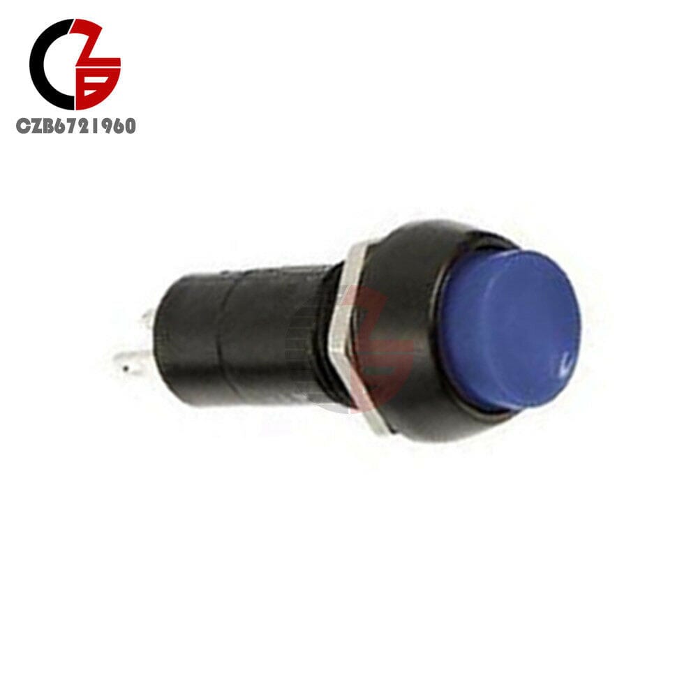 Blå trykkbryter uten lås.