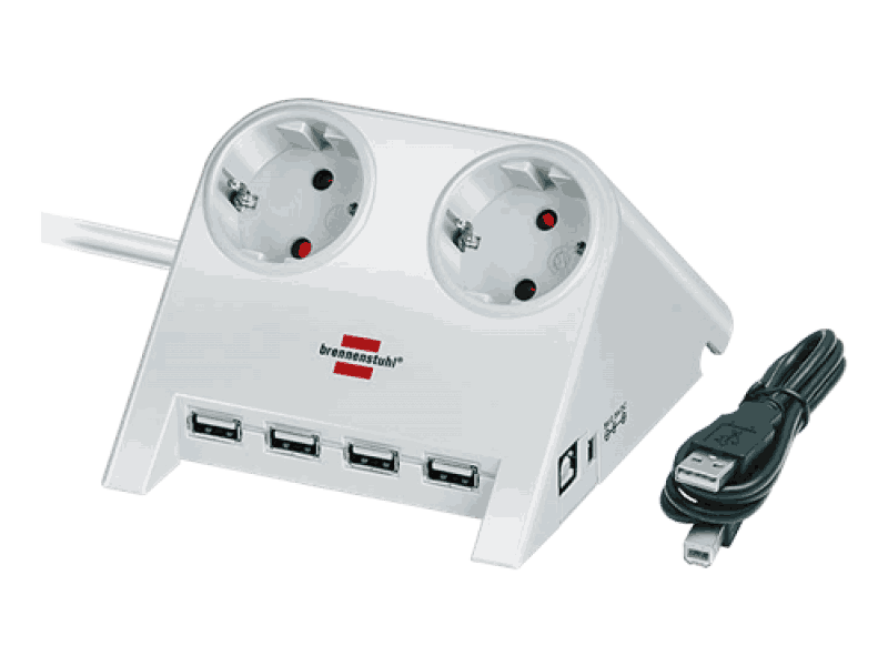 Brennenstuhl Desktop-Power, Power outlet with USB-hub, 2xCEE 7/4 outlets, 1xCEE 7/7 connector, 4xUSB Type A, 1.8m cable, white