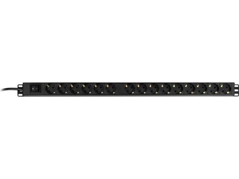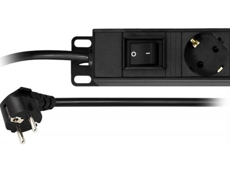 xCEE 7/4 uttak, 1xCEE 7/7 tilkobling, strømbryter, 0,808m 1U, 3m kabel, svart