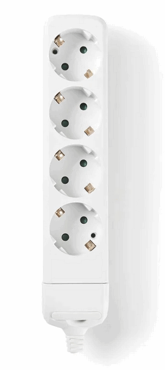 Grenuttak med pirkesikring for å dele et vegguttak i fire stikkontakter.