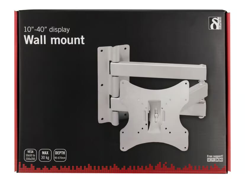 Festehull: VESA 75x75 mm, 100x100 mm, 200x200 mm og 200x100 mm. Veggavstand: min ca. 9 cm, maks ca. 68 cm.