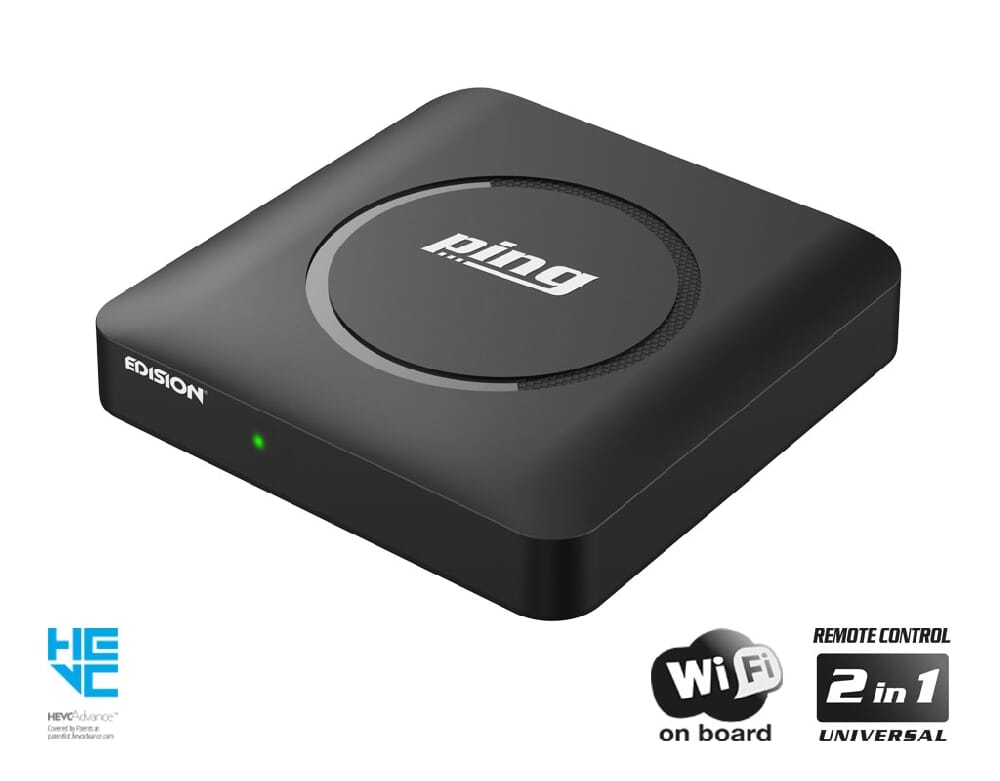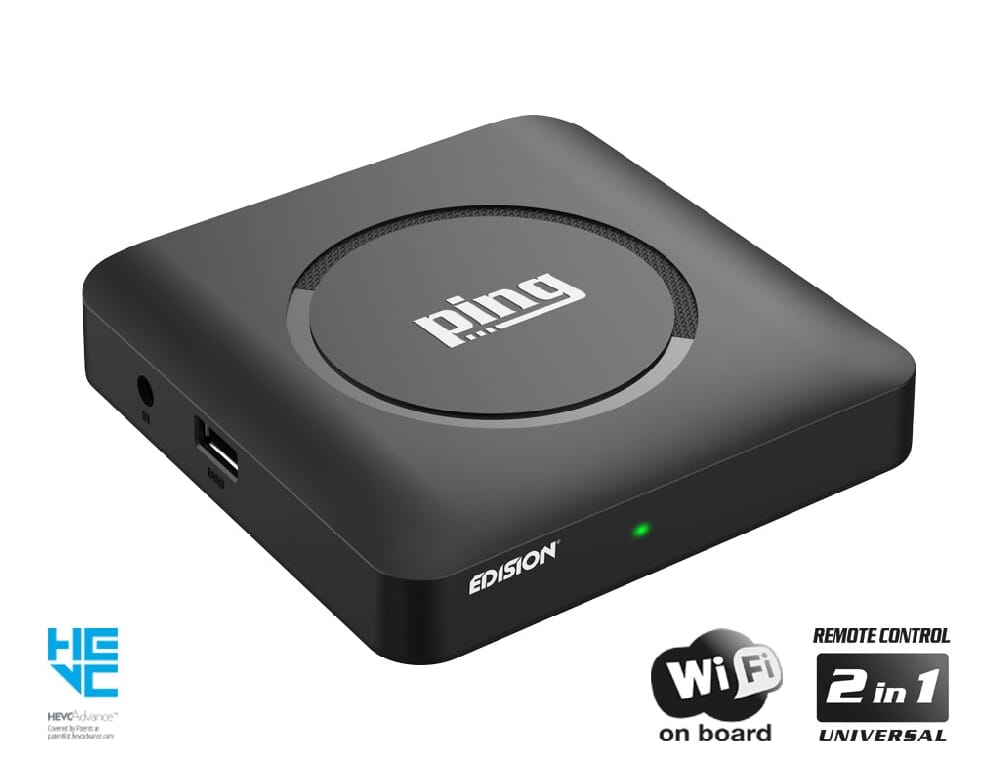 EDISION PING is a Full High Definition Linux OTT IPTV receiver supporting the H.265 HEVC standard. With its unique identity and full advantages, having a highly ergonomic appearance and incredibly compact size, PING revolutionizes the category of OTT IPTV receivers. Providing advanced & enhanced multimedia capabilities, which include, among others, Wi-Fi on Board, Free Internet Streaming TV and Radio, as well as your favorite apps like Stalker supporting (Live TV, VOD & Series), WebTv, YouTube and Shoutcast, PING offers you an advanced viewing experience. With an innovative user-friendly design, it also comes with a freely programmable Universal Remote Control 2-in-1 for TV and STB, plus already pre-configured for SAMSUNG* and LG* TVs.