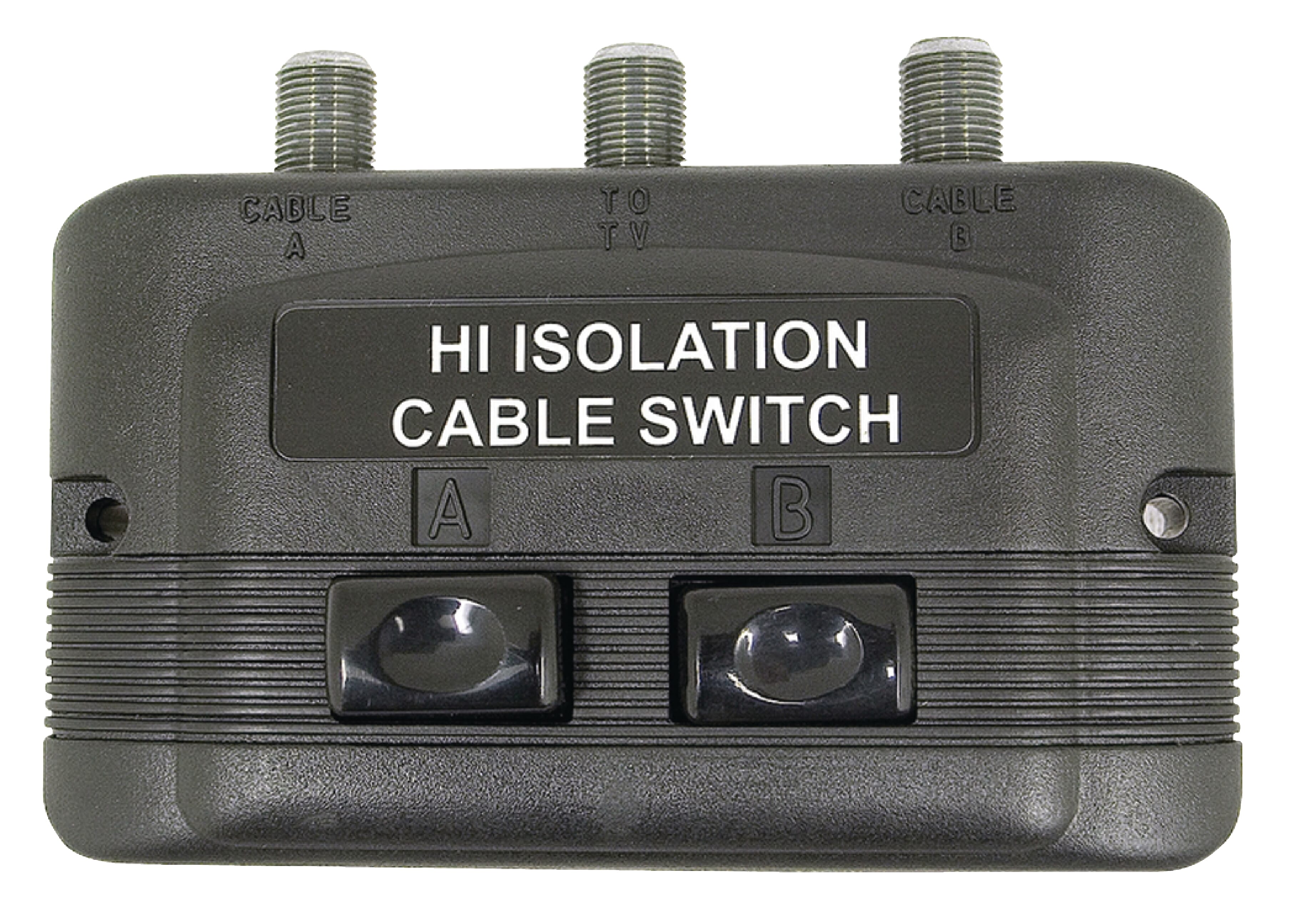En manuell switch med två ingångar. Genom en omkopplare väljs ingång 1 eller 2.